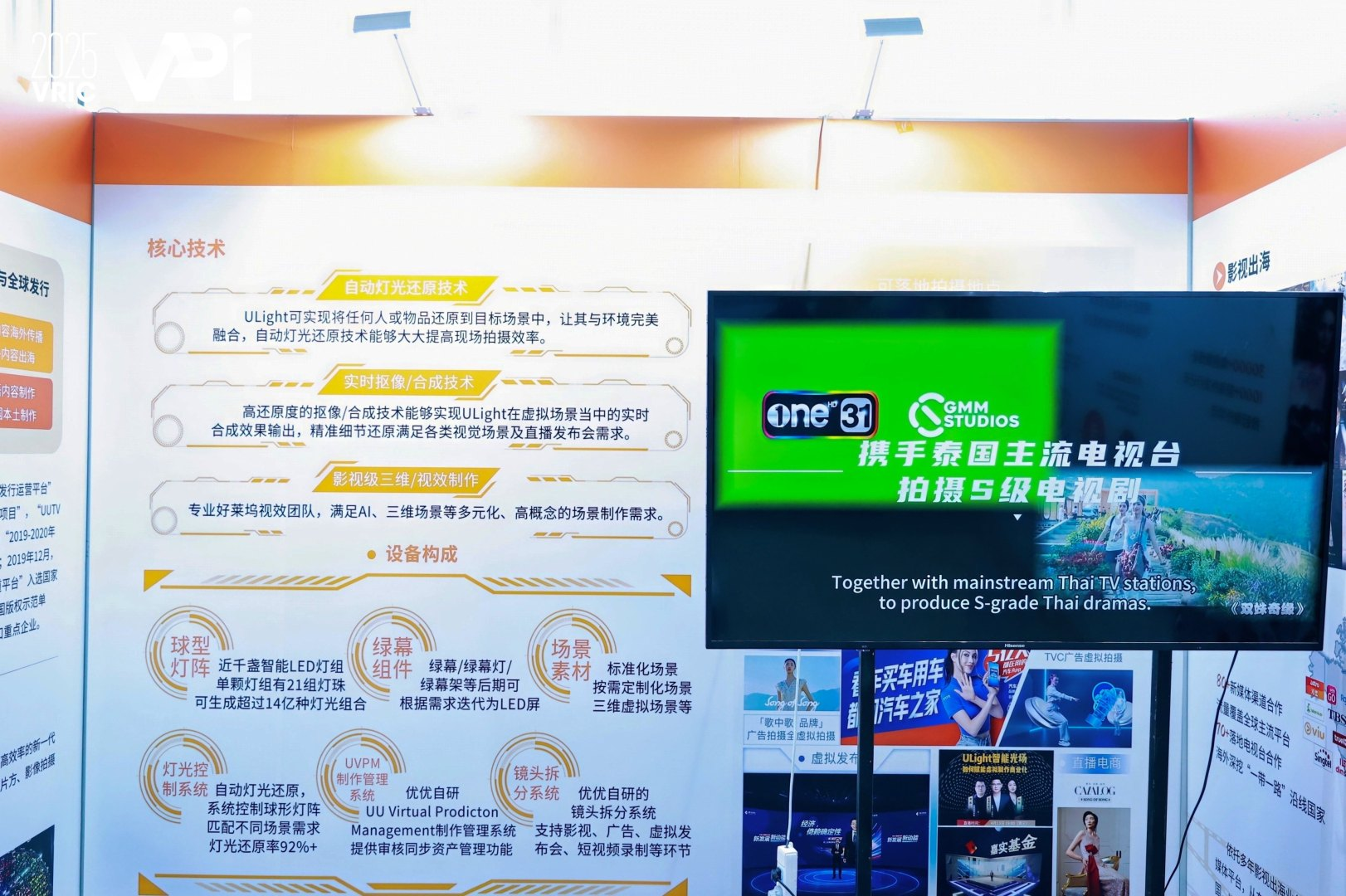 现场了解到,世纪优优一方面推动中国影视内容走向海外,已与多家海外电视台及平台建立合作;另一方面重点展示了其自研的ULight AI虚拟拍摄系统,将虚拟拍摄、灯光与数字资产管理集成到一体,在多部影视作品中落地应用,相比传统拍摄方式更高效、更省成本,加速影视制作的工业化升级。